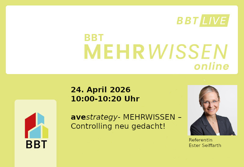Unser BBT Newletter liefert Ihnen in kompakter Form das Wichtigste auf den Schreibtisch oder ins Postfach – zuverlässig, pointiert und praxisnah. Unsere Redaktion recherchiert, bewertet und bereitet Themen auf, die für Sie relevant sind. Mehrmals im Jahr finden Sie auf dem dieser Seite untergliederten Newsletter wechselnde Beiträge.